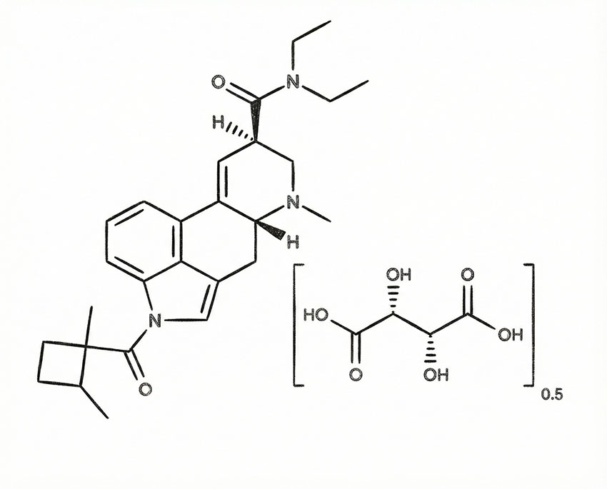 IUPAC-Name (8β)-1-ferrocenecarbonyl-N,N-diethyl-6-methyl-9,10-didehydroergoline-8-carboxamide hemi-L-tartrate